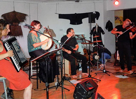 The singularity of Crazy Green Side comes from its captivating energy, that can bring you to transe. The voices union, the violin virtuosity, the sounds of folk guitar, of bouzouki and accordion, the use of various drums (Bodhran, Cajon, derbouka, spoons...) make us travel in the irish rythms, polkas, gigs, reels... from original compositions to traditional themes. Crazy Green SIde brings the audience to dance or to dream of big spaces and freedom.